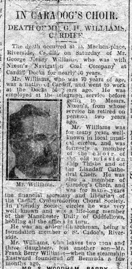 Newspaper cutting announcing the death of George Henry Williams (#408).